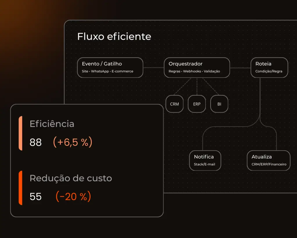 Transformamos dados de navegação e atendimento em painéis simples de entender, destacando gargalos e oportunidades. A partir desses insights, disparamos automações: e-mails, tarefas no CRM, alertas e atualizações em planilhas/sistemas.