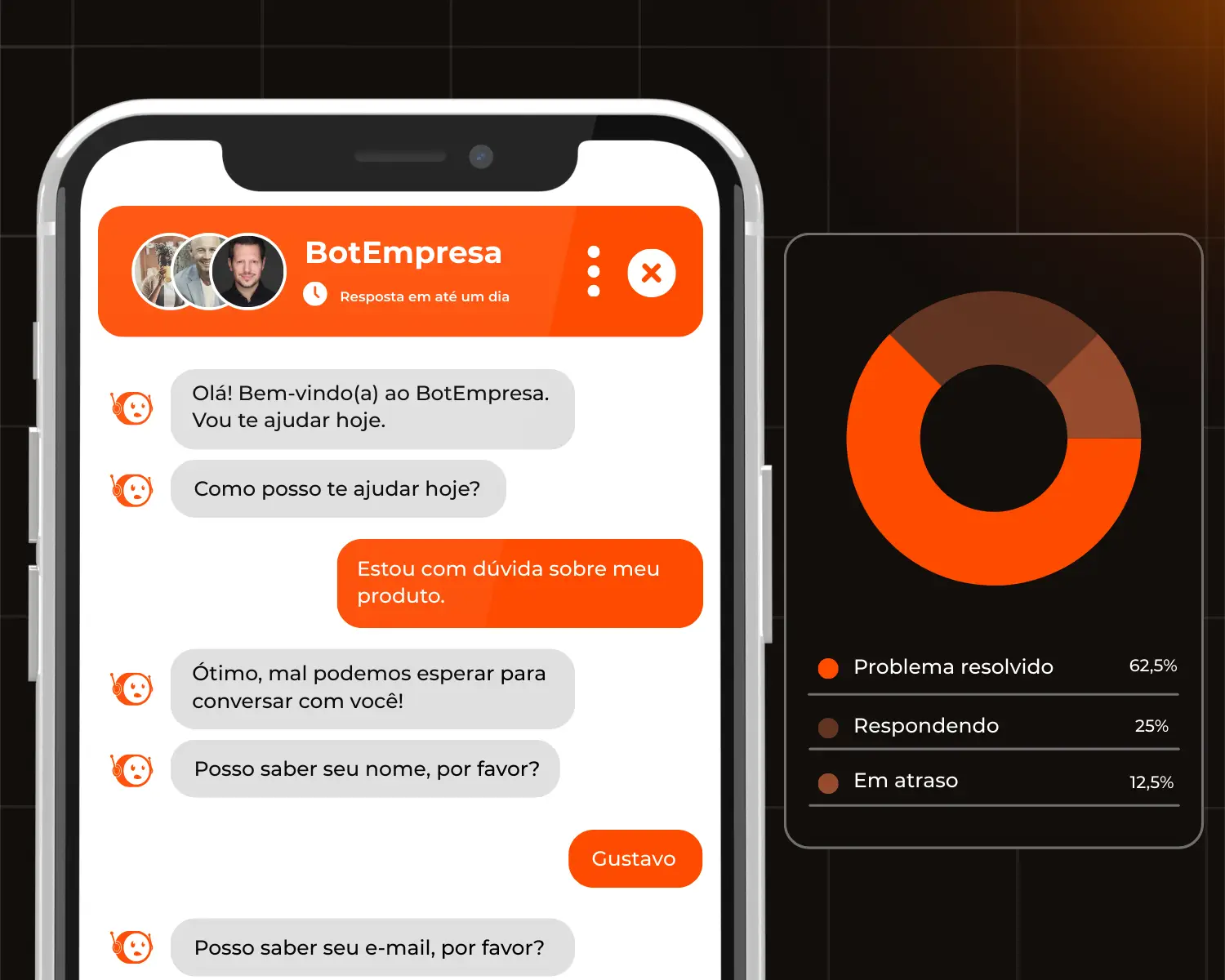 Implementamos chatbots inteligentes que atendem 24/7. Quando necessário, o atendimento é transferido para um humano com todo o histórico e regras de roteamento (por área, horário ou prioridade).